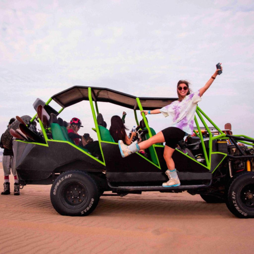 Once you arrive at the Huacachina Oasis, exciting desert adventures await. One of the most popular activities is sandboarding, an experience that allows you to slide down the towering sand dunes at full speed. Whether you are a beginner or an expert in this sport, sandboarding gives you a guaranteed dose of adrenaline and fun.